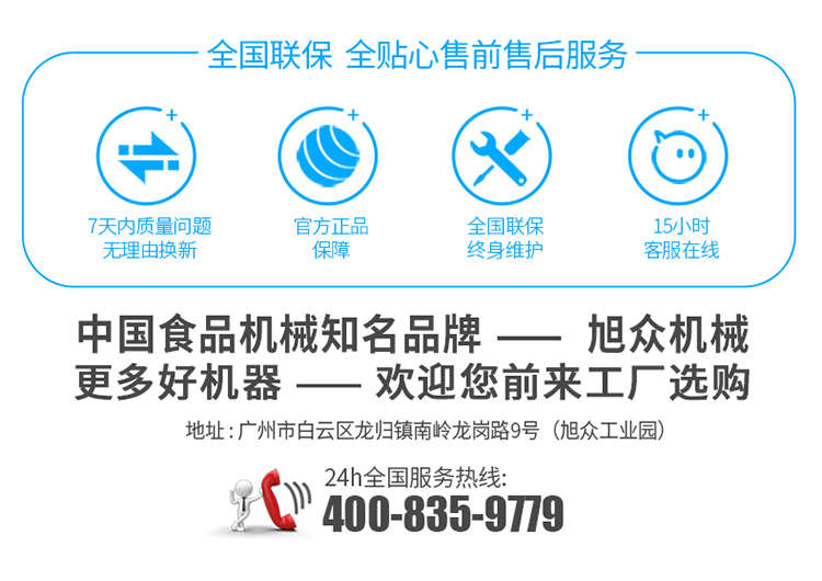 廣州旭眾食品機(jī)械有限公司是一家集科研開(kāi)發(fā),生產(chǎn)設(shè)計(jì),營(yíng)銷(xiāo)服務(wù)為一體的現(xiàn)代化生產(chǎn)企業(yè)。現(xiàn)代化生產(chǎn)車(chē)間,精湛制造技術(shù),所產(chǎn)機(jī)械歷經(jīng)市場(chǎng)重重考驗(yàn),不斷贏得海內(nèi)外客戶的贊譽(yù)。