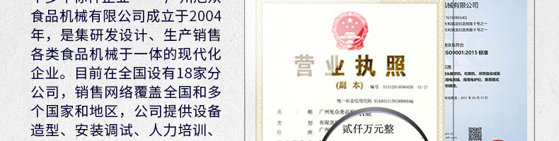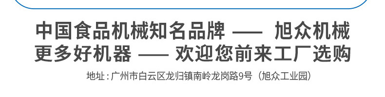 廣州旭眾食品機(jī)械有限公司是一家集科研開發(fā),生產(chǎn)設(shè)計(jì),營銷服務(wù)為一體的現(xiàn)代化生產(chǎn)企業(yè)?,F(xiàn)代化生產(chǎn)車間,精湛制造技術(shù),所產(chǎn)機(jī)械歷經(jīng)市場(chǎng)重重考驗(yàn),不斷贏得海內(nèi)外客戶的贊譽(yù)。