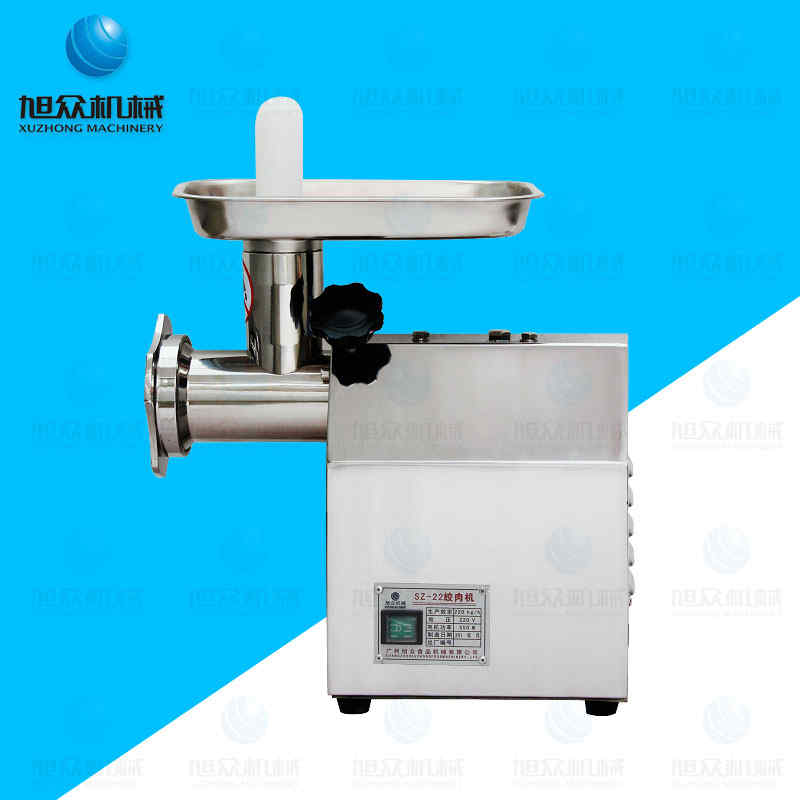 SZ-22 電動絞肉機(jī),電動絞肉機(jī)的??字睆綖?、8mm,本機(jī)優(yōu)點(diǎn)具有電耐用、方便快捷、結(jié)構(gòu)緊湊、外形美觀、操作方便、效率高、耗電少、清潔保養(yǎng)容易、安全衛(wèi)生等優(yōu)點(diǎn)。采用全封閉齒輪傳動,結(jié)構(gòu)緊湊,運(yùn)轉(zhuǎn)平穩(wěn),工作可靠,且維修方便;絞肉機(jī)頭及接觸食品的零部件都采用不銹鋼制造,安全無污染;機(jī)殼線條流暢,沒有可污的縫隙及無傷害操作者的銳邊,易于清潔。