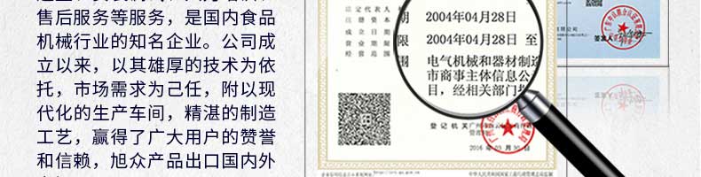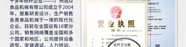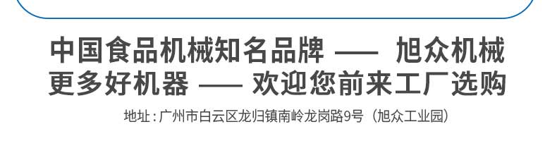 廣州旭眾食品機械有限公司是一家集科研開發(fā),生產(chǎn)設(shè)計,營銷服務為一體的現(xiàn)代化生產(chǎn)企業(yè)?,F(xiàn)代化生產(chǎn)車間,精湛制造技術(shù),所產(chǎn)機械歷經(jīng)市場重重考驗,不斷贏得海內(nèi)外客戶的贊譽。