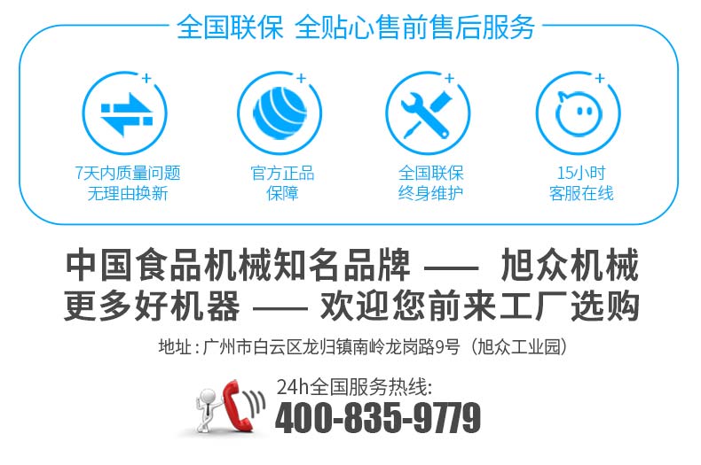 廣州旭眾食品機械有限公司是一家集科研開發(fā),生產(chǎn)設(shè)計,營銷服務(wù)為一體的現(xiàn)代化生產(chǎn)企業(yè)?,F(xiàn)代化生產(chǎn)車間,精湛制造技術(shù),所產(chǎn)機械歷經(jīng)市場重重考驗,不斷贏得海內(nèi)外客戶的贊譽。
