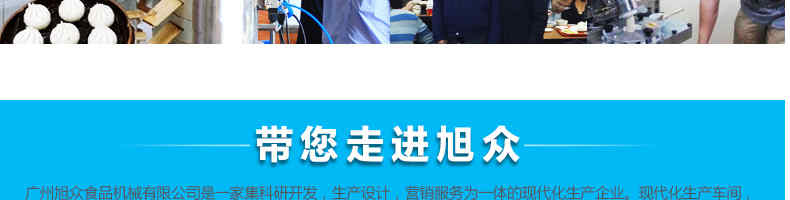 廣州旭眾食品機械有限公司是一家集科研開發(fā),生產(chǎn)設(shè)計,營銷服務為一體的現(xiàn)代化生產(chǎn)企業(yè)?,F(xiàn)代化生產(chǎn)車間,精湛制造技術(shù),所產(chǎn)機械歷經(jīng)市場重重考驗,不斷贏得海內(nèi)外客戶的贊譽。