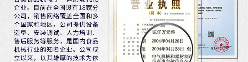 廣州旭眾食品機(jī)械有限公司是一家集科研開(kāi)發(fā),生產(chǎn)設(shè)計(jì),營(yíng)銷服務(wù)為一體的現(xiàn)代化生產(chǎn)企業(yè)?,F(xiàn)代化生產(chǎn)車間,精湛制造技術(shù),所產(chǎn)機(jī)械歷經(jīng)市場(chǎng)重重考驗(yàn),不斷贏得海內(nèi)外客戶的贊譽(yù)。